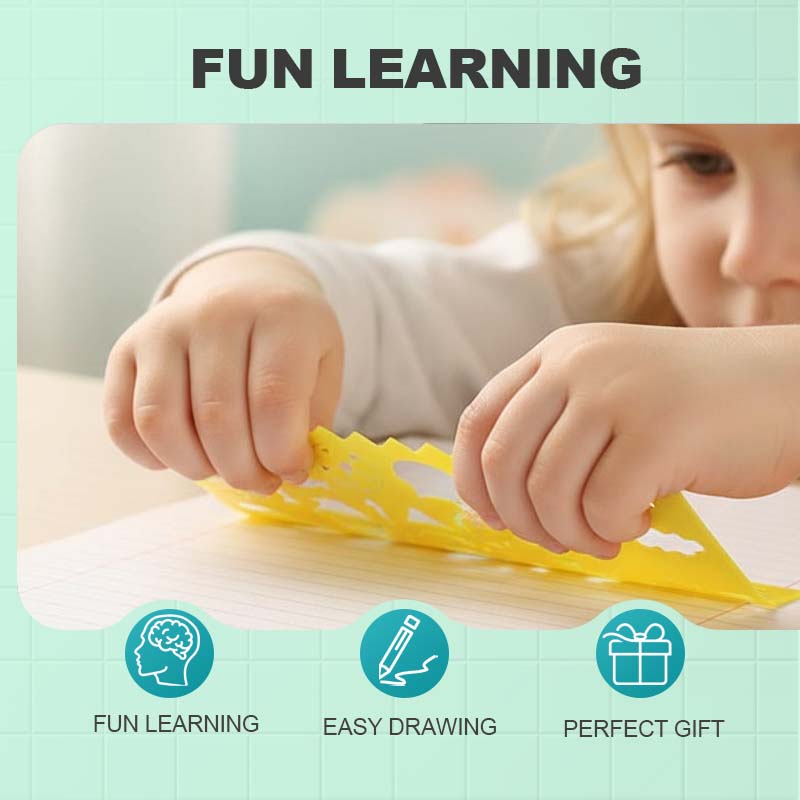 HELPPO PIIRTÄMINEN: Näiden helppokäyttöisten sapluunoiden avulla lapset voivat vaivattomasti luoda erilaisia kuvioita ja hahmoja. Sileät reunat takaavat turvallisen käsittelyn ja täydellisten muotojen piirtämisen joka kerta.